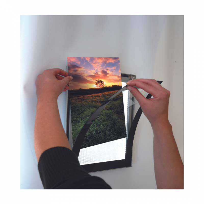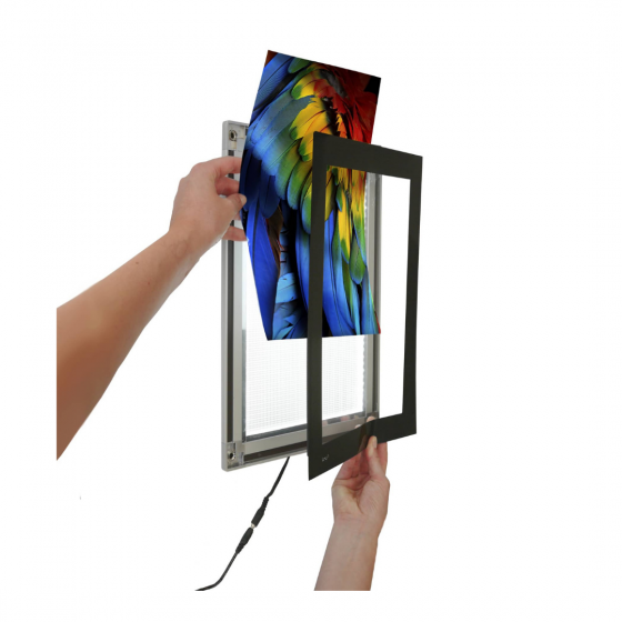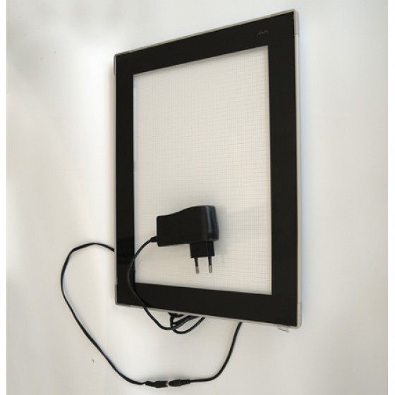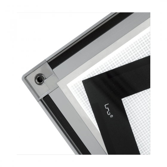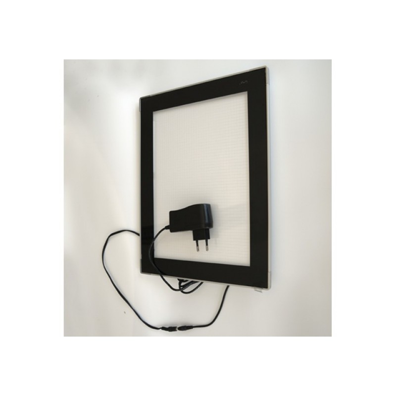 Cadre composé d'un panneau en acrylique de 8 mm d'épaisseur, de LED et d'une protection flexible en polycarbonate transparent.