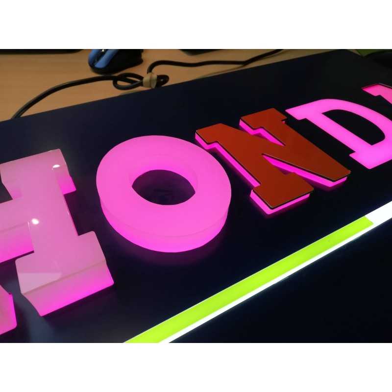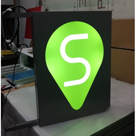 Caissons lumineux réalisés sur mesure, simple face ou double face.