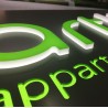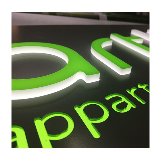 Enseignes lumineuses constituées d'un groupe de lettres ou d'un logo, rétro-éclairées, pour l'intérieur ou l'extérieur.