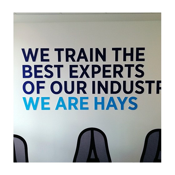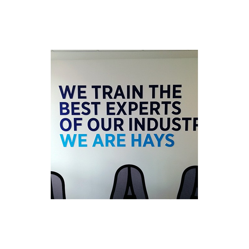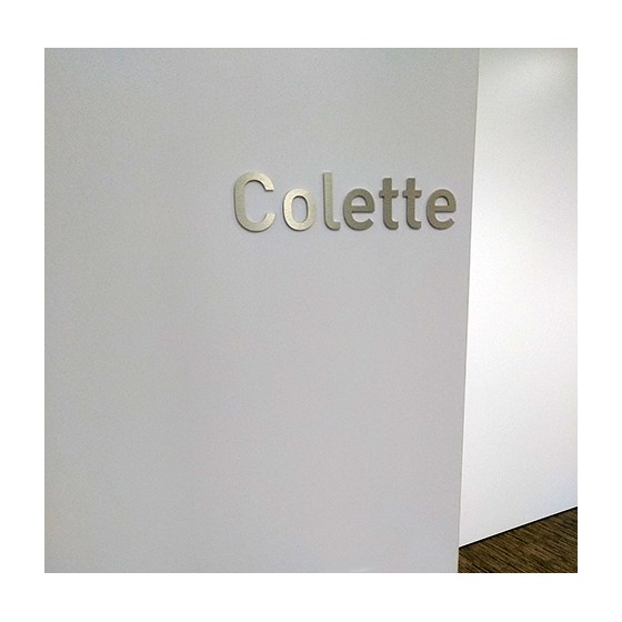 Différents matériaux sont disponibles pour une visibilité maximale de votre texte: adhésifs, plexiglas coloré ou dibond peu épais.