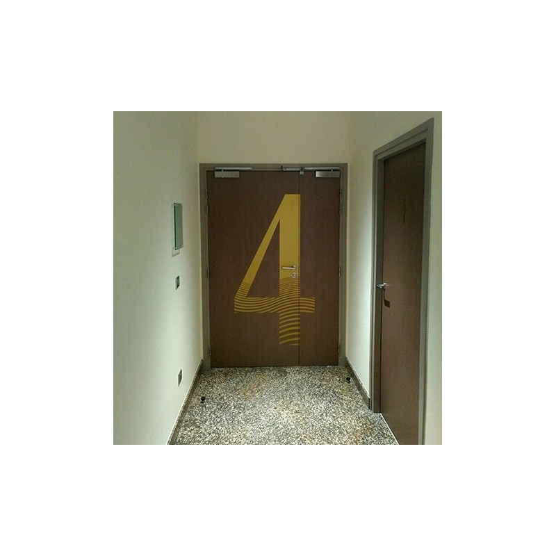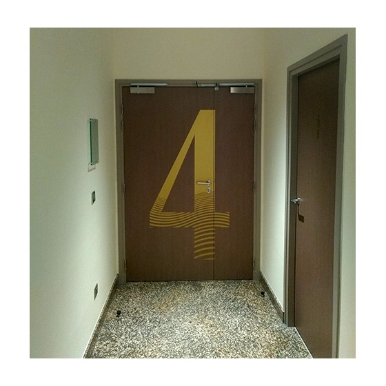 Lettres découpées et apposées sur un mur ou une porte pour informer ou guider