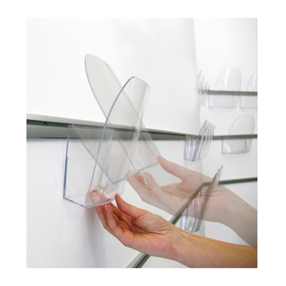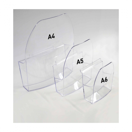 - de porte-dépliants en polystyrène transparent vendu à l'unité, pour format A4, A5 ou A6