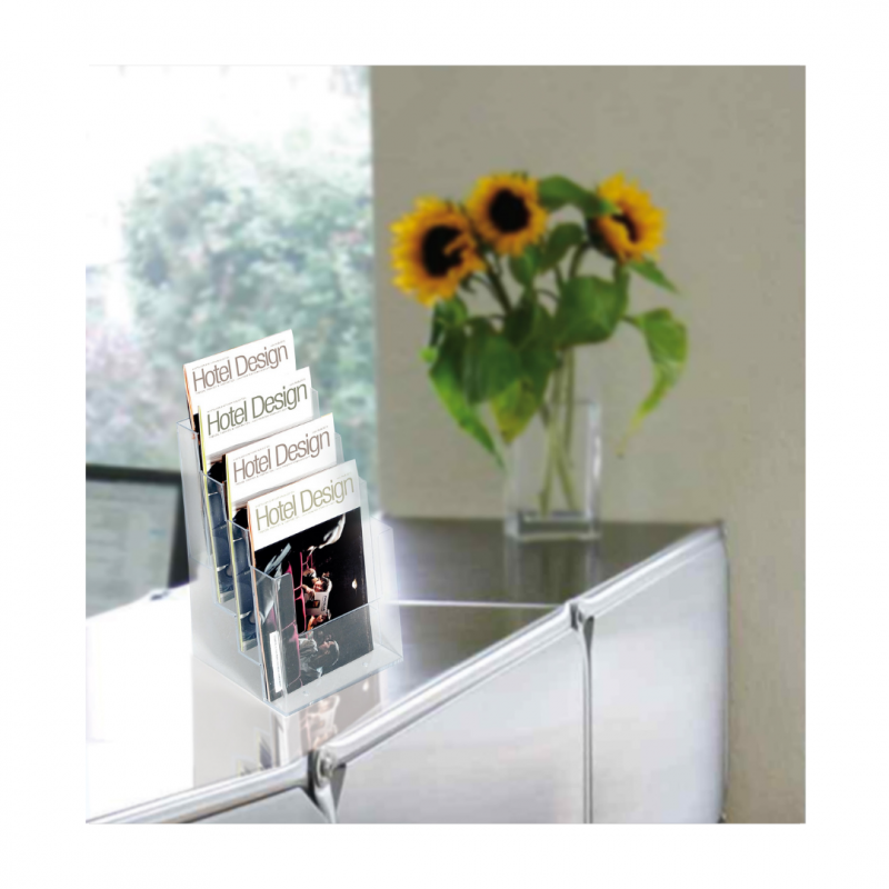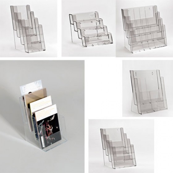 Porte-brochures à plusieurs compartiments en plexi transparent.