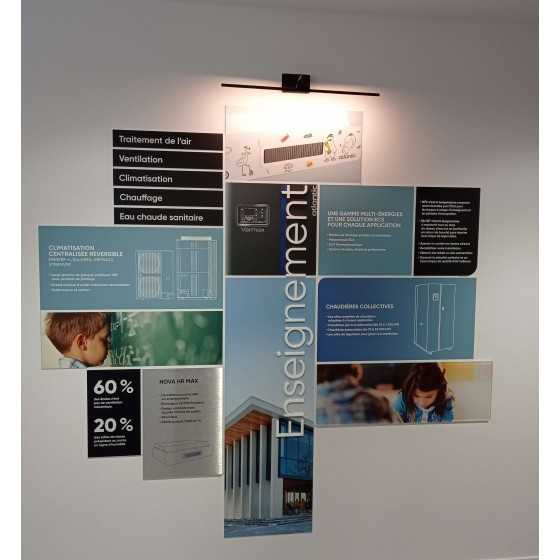 Différents matériaux selon la surface et l'utilisation: mousse compacte, PVC, dibond Différentes épaisseurs possibles.