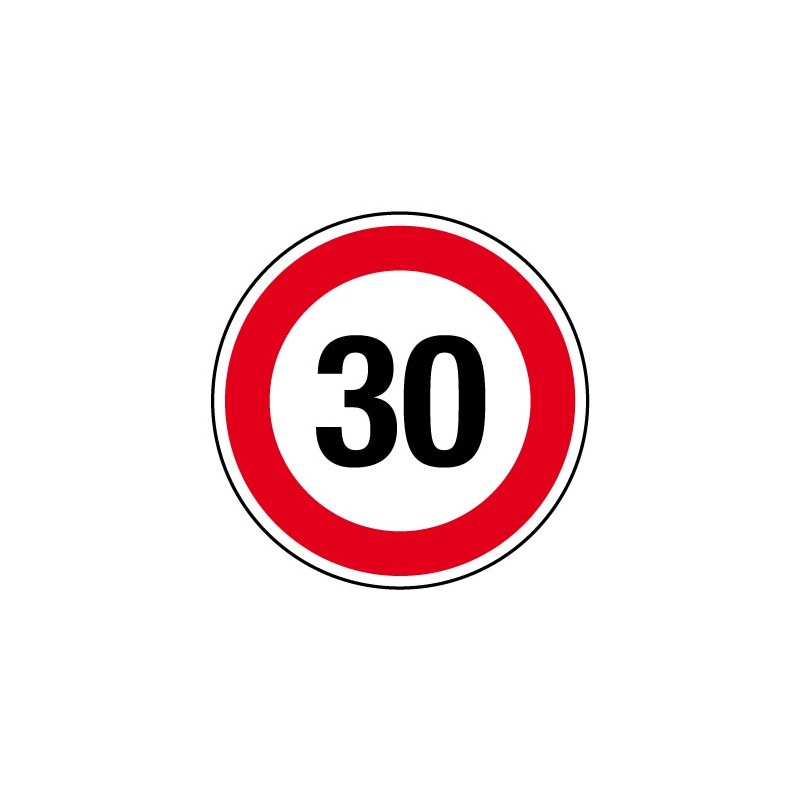 Panneau à angles arrondis, en alucobond 3 mm, fond blanc, marquage en impression et/ou en film adhésif.