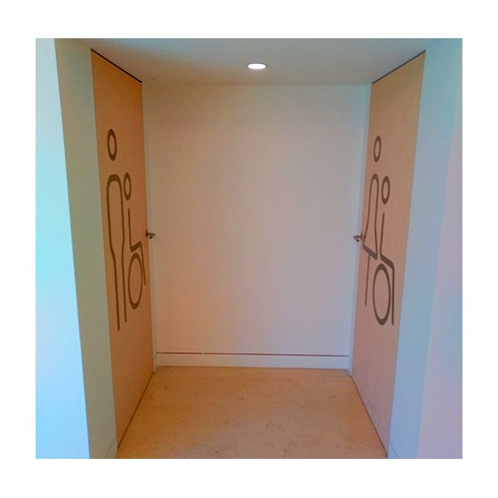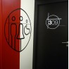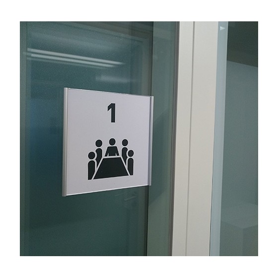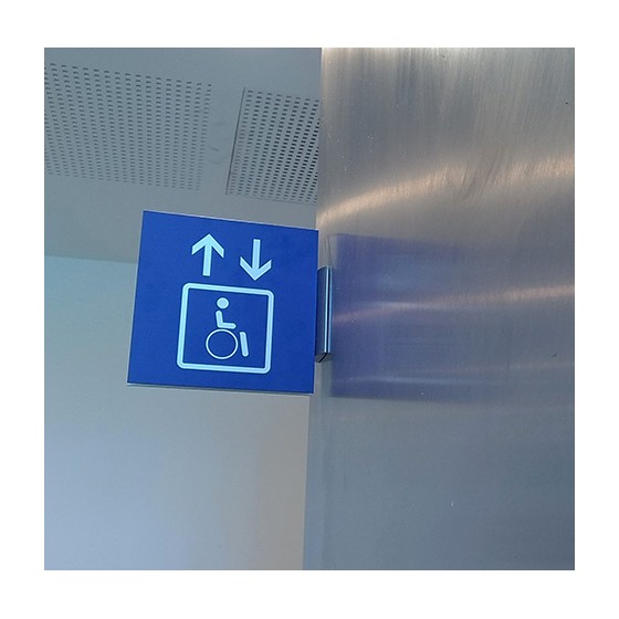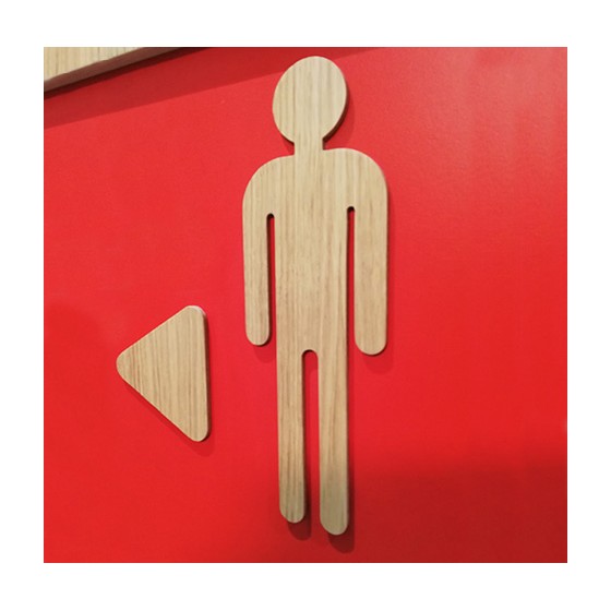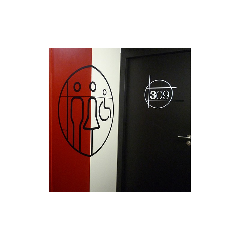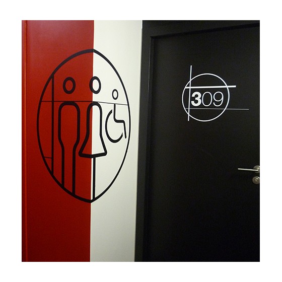 Nombreuses possibilités de conception: petite plaque (métal, dibond, plexiglas, PVC, bois, carton), gravée ou imprimée, adhésif mural grand format de différentes couleurs ou design découpé directement dans la matière.