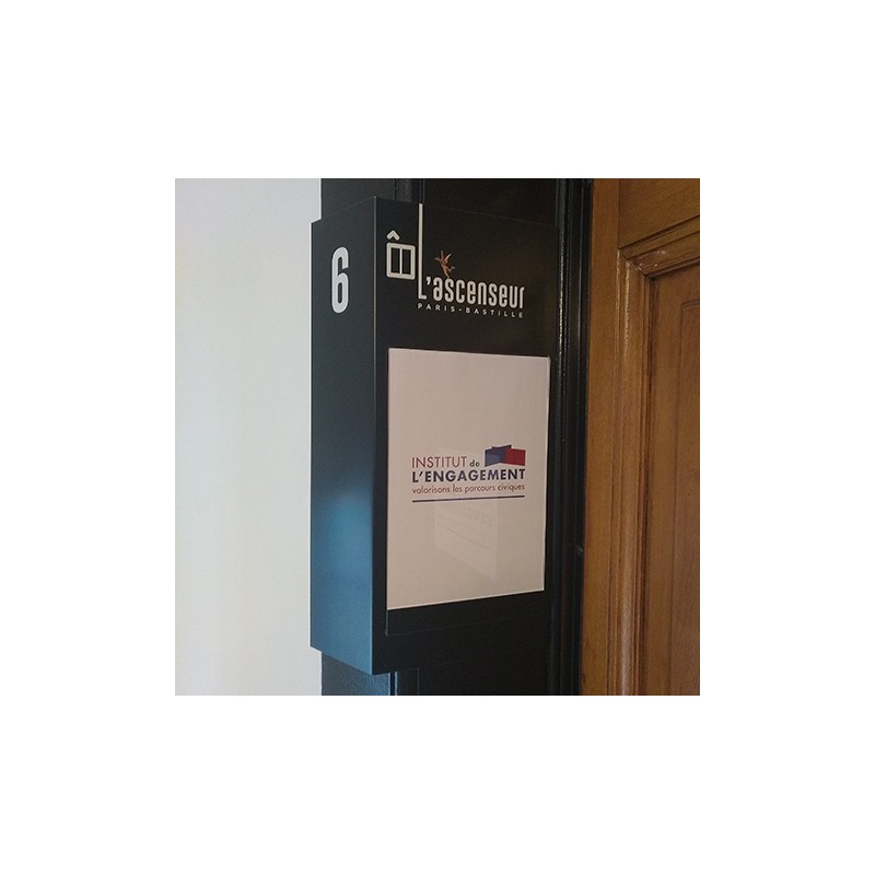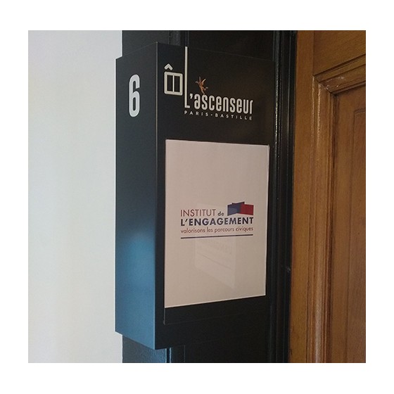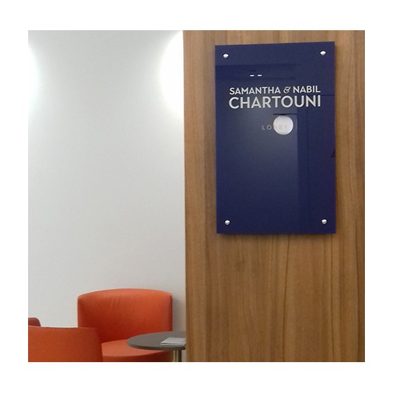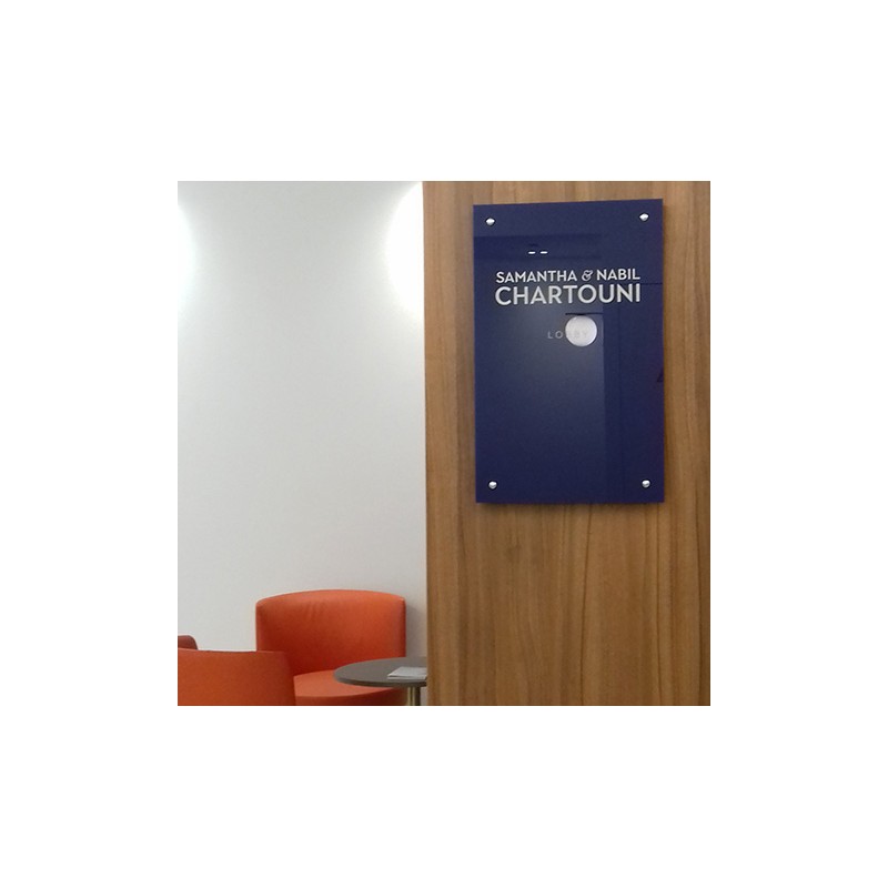 Petits formats de plaques de porte à fixer sur le mur à côté de la porte ou directement sur la porte. Conception sur-mesure en fonction de l'identité de la marque et du design du lieu.