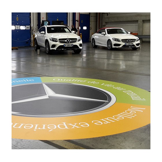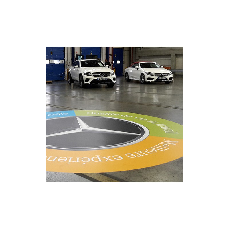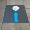 Peinture ou adhésifs techniques, spécialement conçus pour le marquage au sol à l'extérieur: protection anti-usure, anti-dérapant, anti-UV.