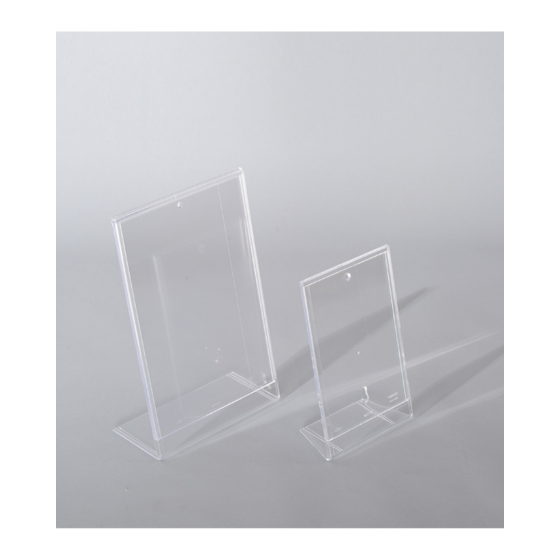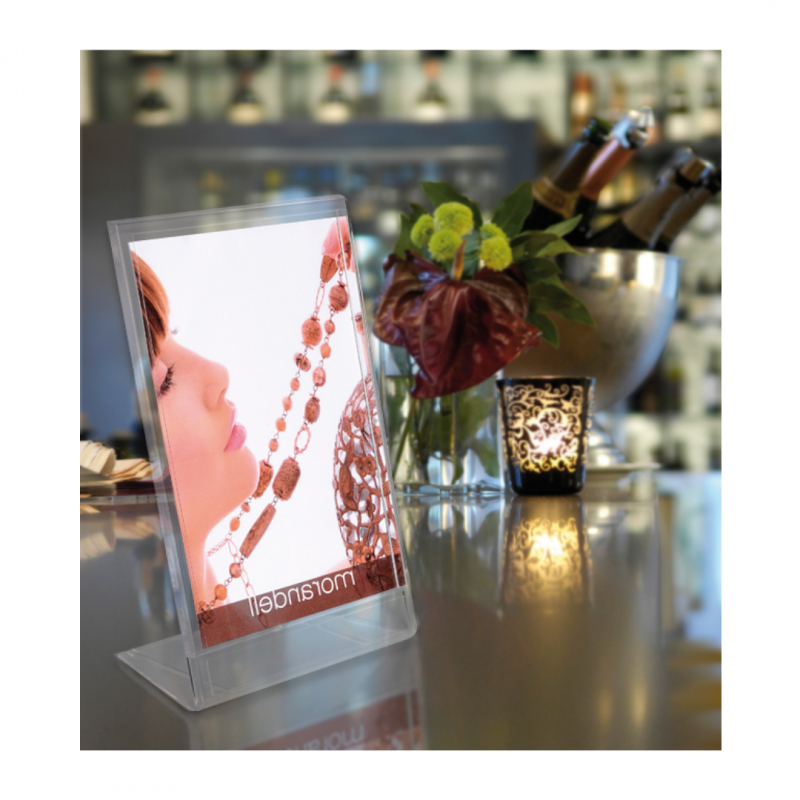 Chevalet pour affichage en plexi transparent. Dimensions : A4 ou A5.