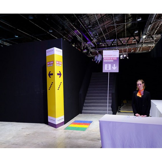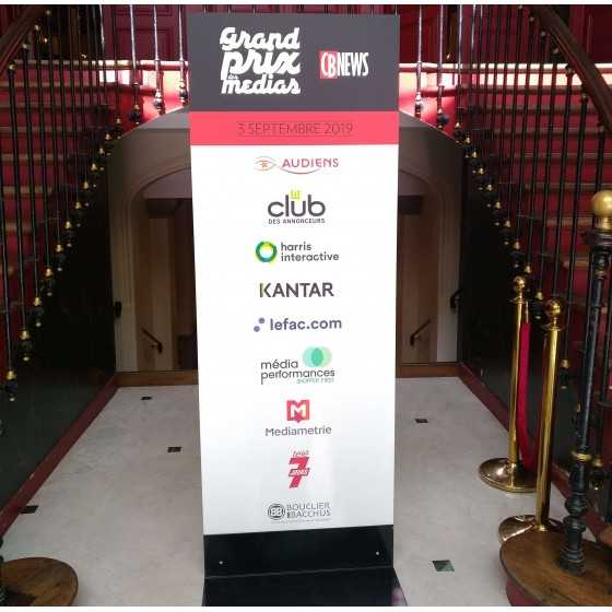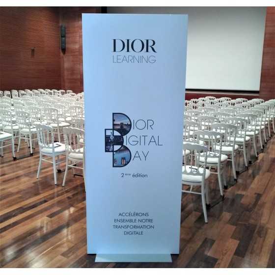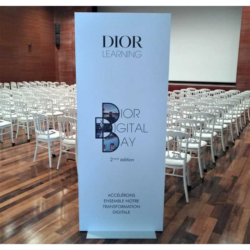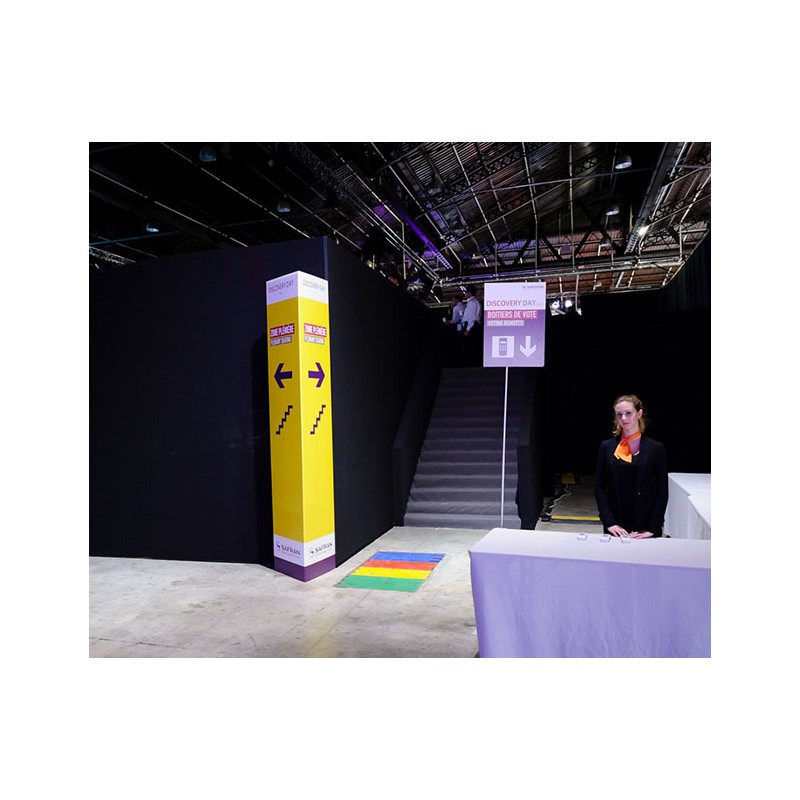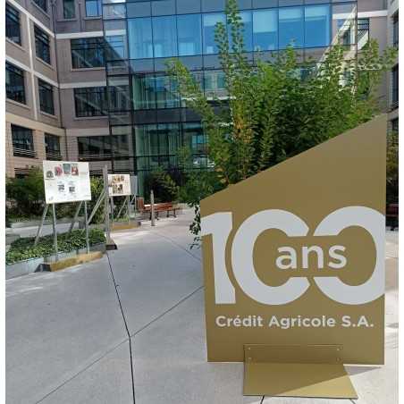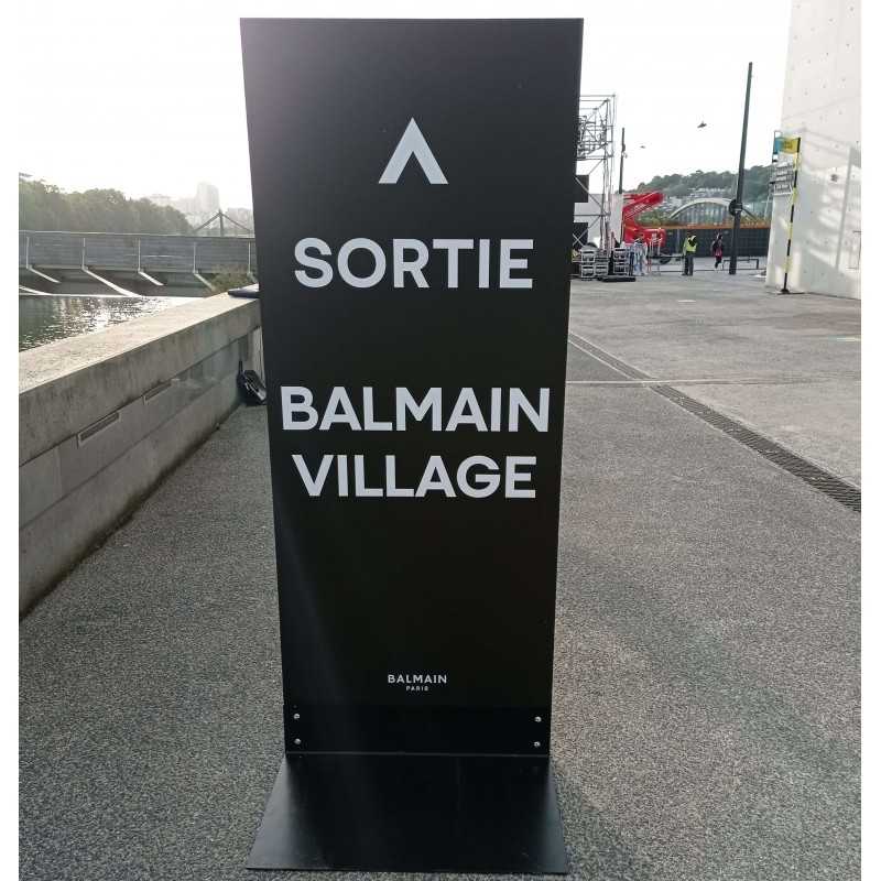 Panneaux imprimés recto / verso et fixés sur des embases fixes ou mobiles selon le lieu et l'utilisation.