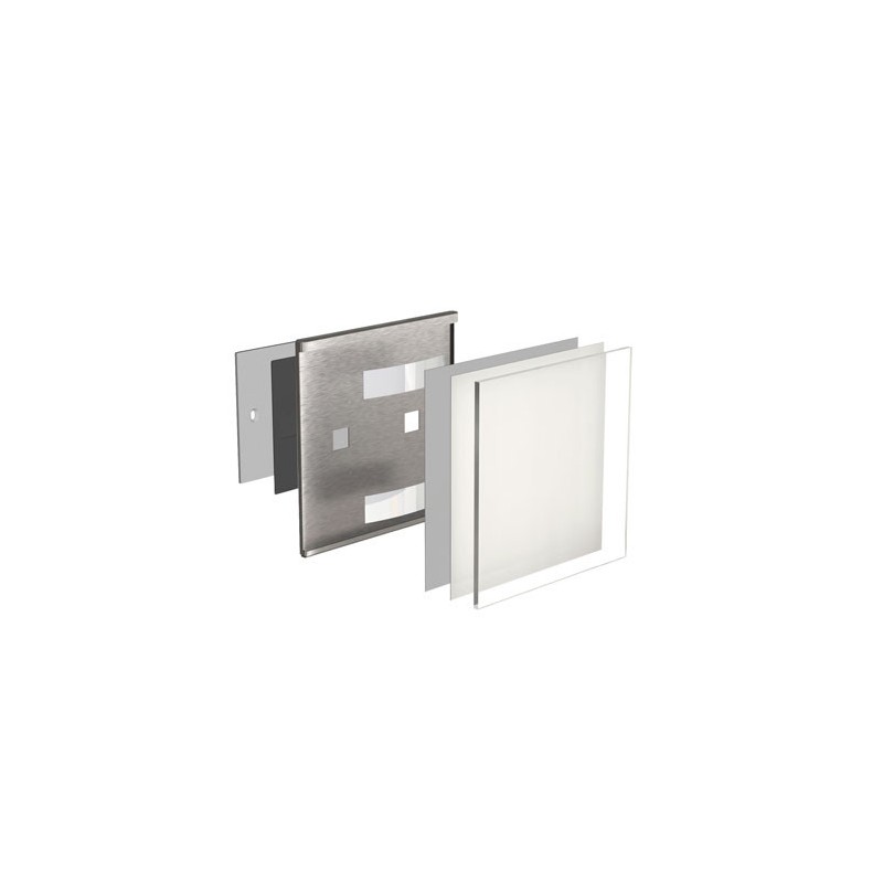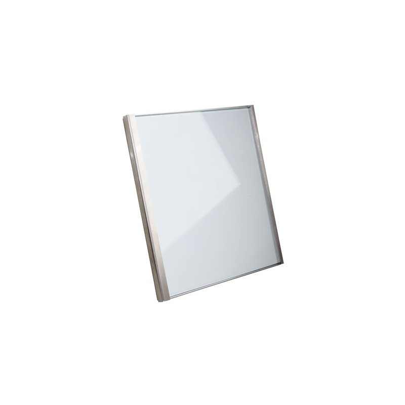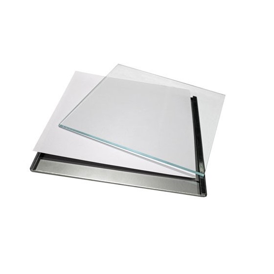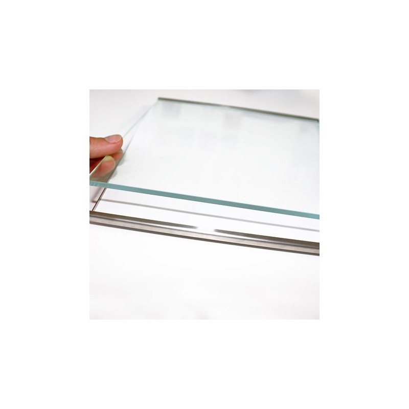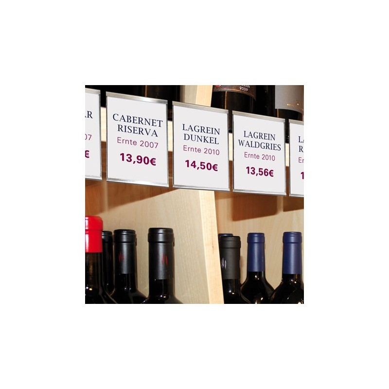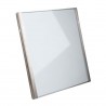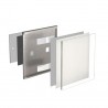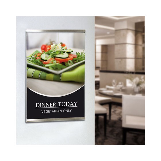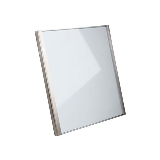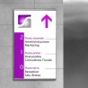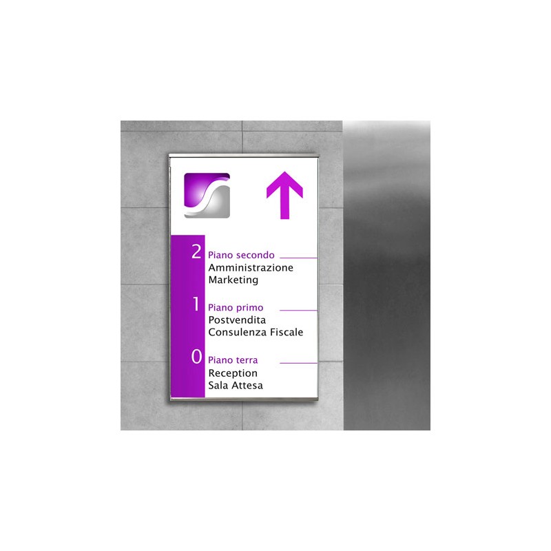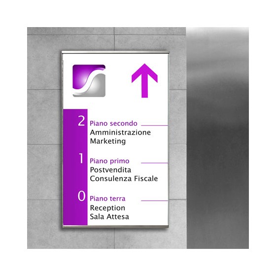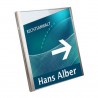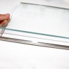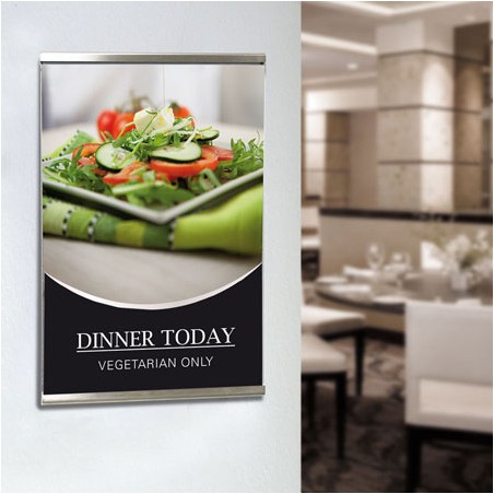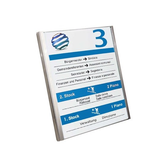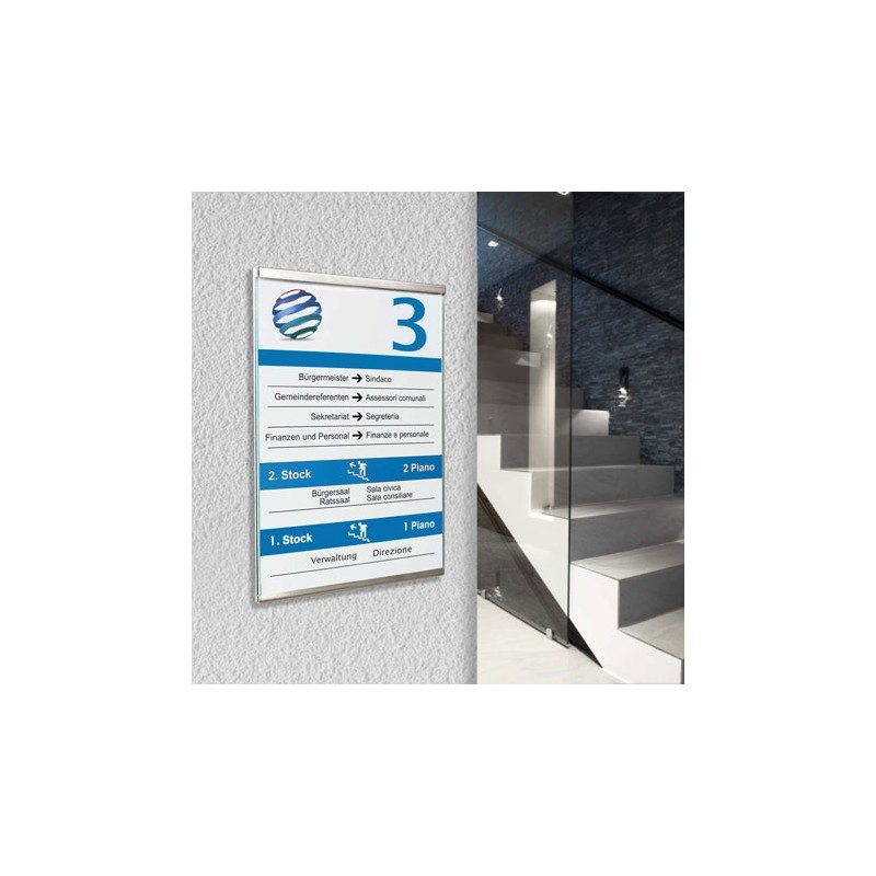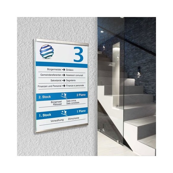 Plaque signalétique en acier inoxydable brossé équipé d'un système de ressort qui permet l'ouverture d'un verre acrylique anti-reflet.