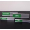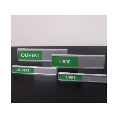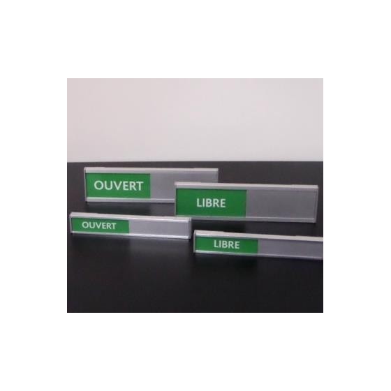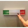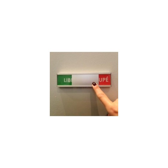 Plaque de porte en aluminium naturel avec systeme coulissant laissant apparaître un message"libre" ou "occupé".