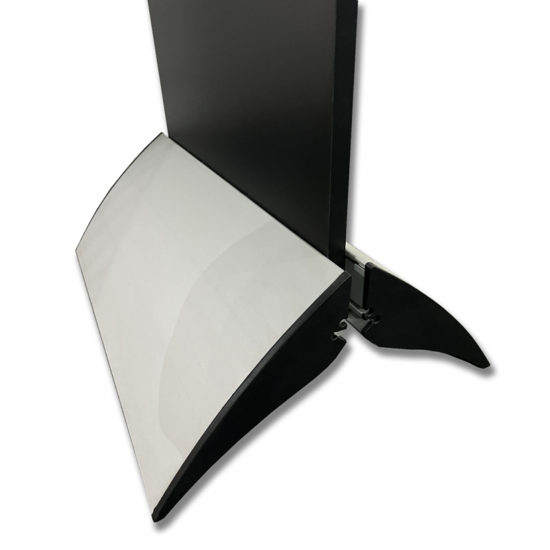 Totem signaletique composé d'une platine en aluminium anodisé et d'un panneau en dibond recto/verso.
