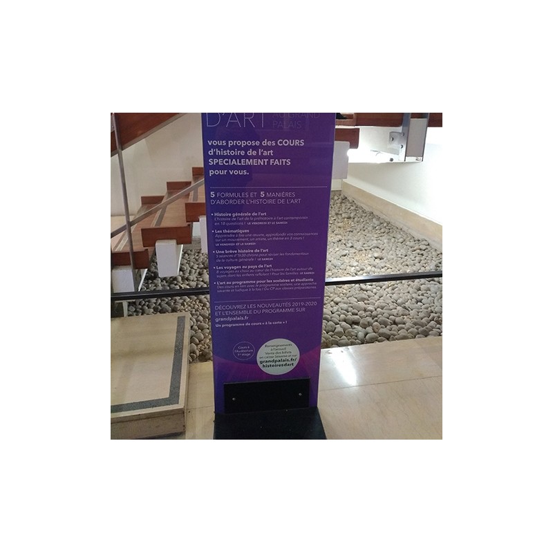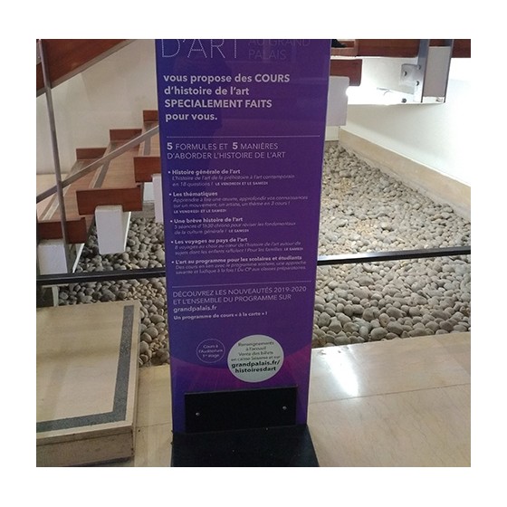 Indispensables pour guider le parcours des visiteurs dans des locaux professionnels, une exposition ou un évènement. Conception sur-mesure pour une adaptation parfaite à l'identité de la marque, à l'esthétique du lieu et à ses contraintes.