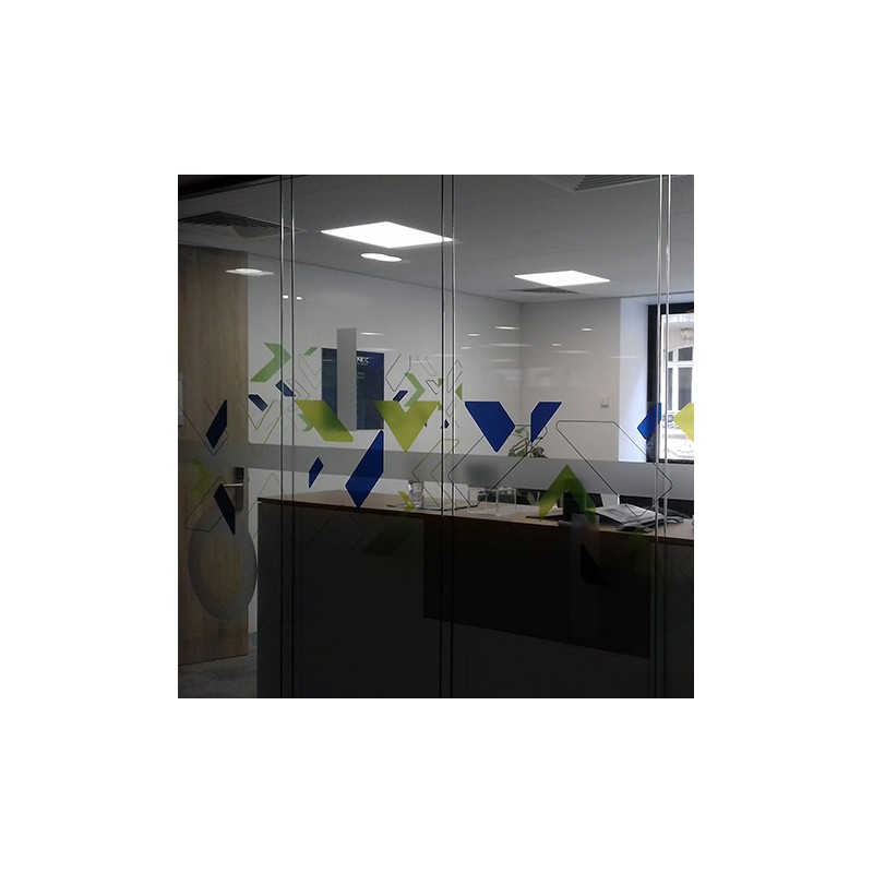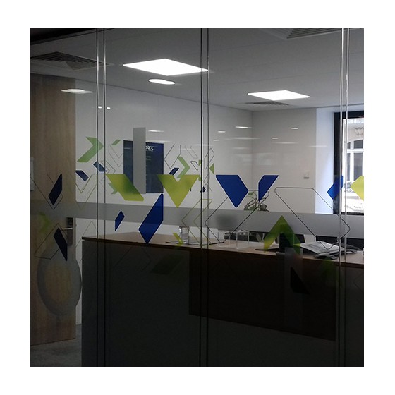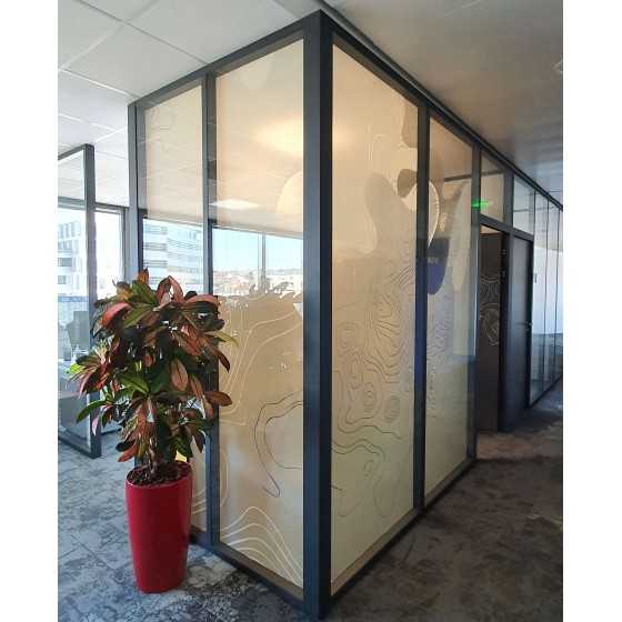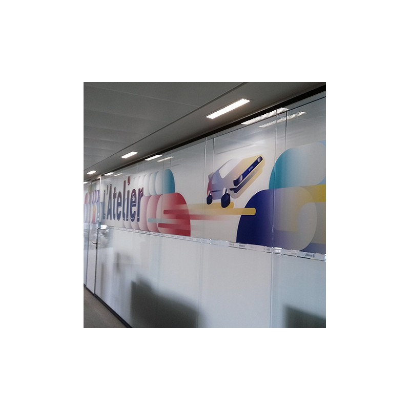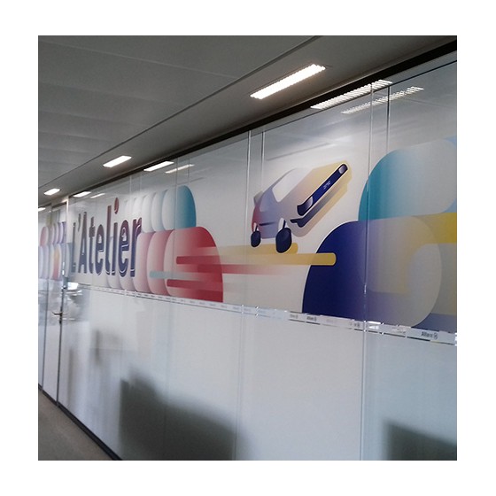 Installé à l'extérieur (vitrines) ou à l'intérieur (bureaux ou salles de réunion vitrés).